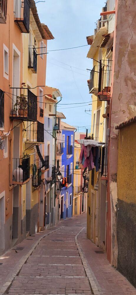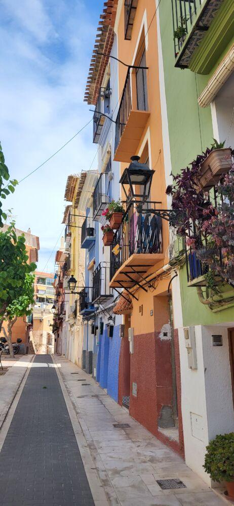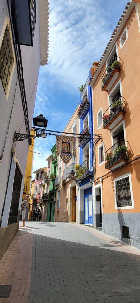 Najbardziej charakterystycznym elementem Villajoyosy są jej kolorowe kamienice. Każda w innym odcieniu – od pastelowych błękitów po intensywne czerwienie. Legenda mówi, że rybacy malowali domy na jaskrawe kolory, aby łatwiej odnaleźć je z morza. Dziś te fasady tworzą jedną z najbardziej fotogenicznych ulicówek na Costa Blanca.